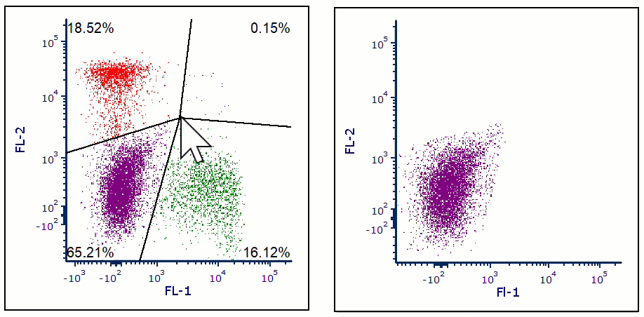 One of the many time saving features that FCS Express offers is the ability to link quadrants from one plot to another. This means that when the quadrants on one plot are moved, the quadrants on the other plot will be automatically updated. Linking quadrants is useful in circumstances when you want to set up a negative quadrant on your controls, and have the quadrants on your sample data automatically update.
