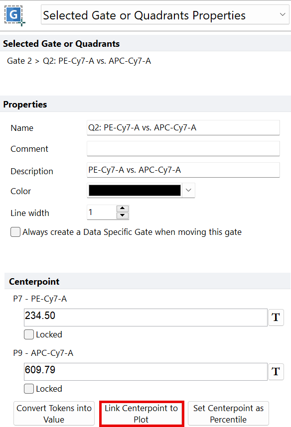 In FCS Express 7.20 and later, gates are automatically created for each quadrants displayed on a plot. Quadrant gates and can be manipulated like any other gate and may be used anywhere in the gating hierarchy. Quadrant gates are particularly useful if you wish to display, back gate, or perform further analysis on only the cells within a quadrant on any plot.