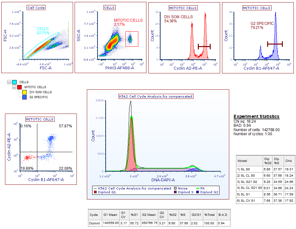 Easily perform cell cycle modeling of Attune data sets using the Multicycle tools within FCS Express. FCS Express enables real time modeling with beautiful graphical representations of your data sets.