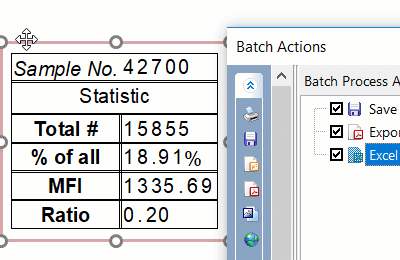 Emphasize your results by formatting your fonts, adding bullet points, changing line spacing, and other text editing functions with which you know from using Office. The best part is your fully-formatted text boxes and results will update as gates and data files change.