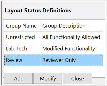With Layout-based Security, you can set up the restrictions designated for an analysis layout. Any user who opens the layout will be prevented from performing the restricted functions allowing you to create layouts with different permissions based on your laboratories needs.
