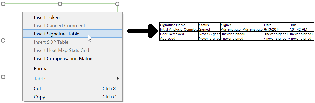FCS Express supports a comprehensive set of features to allow you to manage and record electronic signatures, to ensure that a member of each required group (e.g., techs, supervisors, pathologists, etc.) have viewed and approved the analysis. Signatures work in conjunction with the Security features.